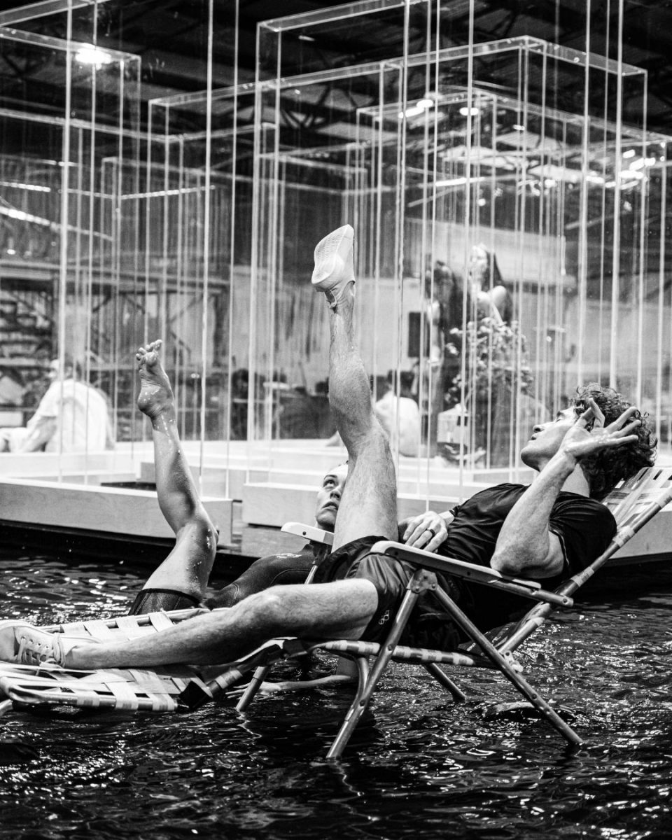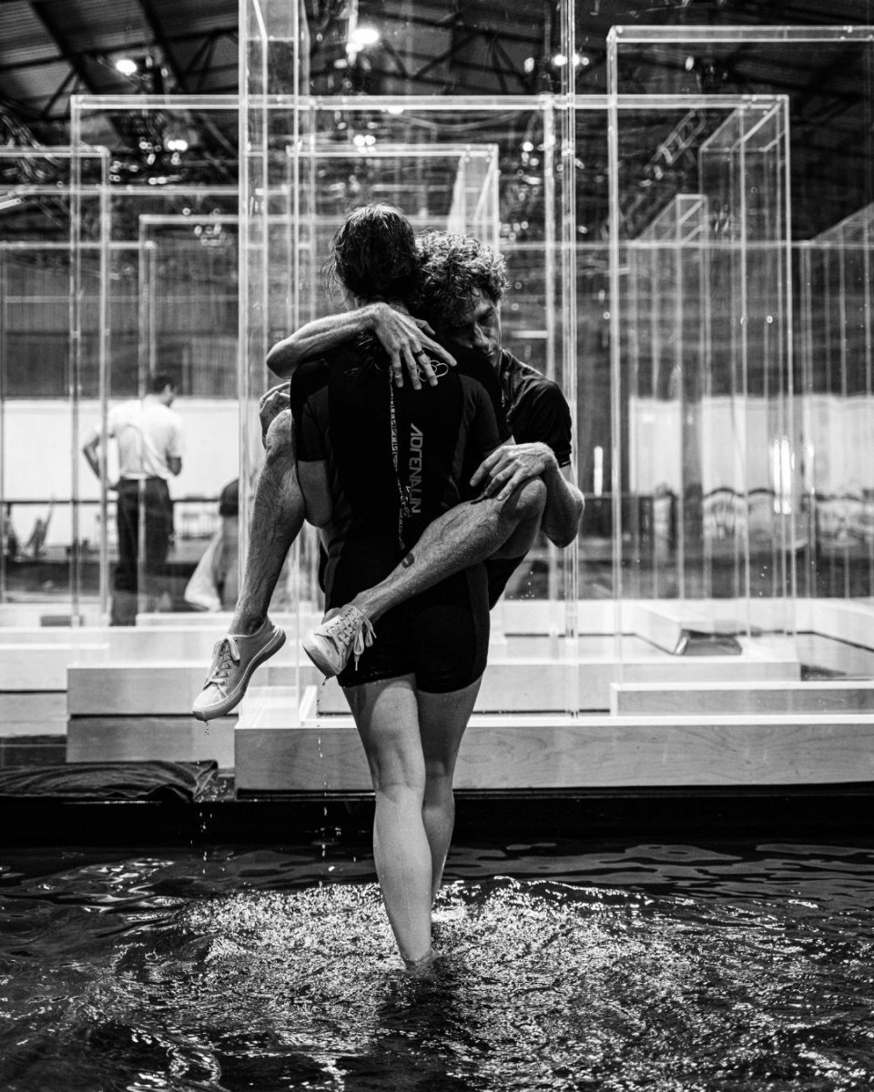 See below images and footage of members of the Australasian Dance Collective rehearsing for Salamander, choreographed by Maxine Doyle, in Es Devlin’s transformative flooded labyrinth.